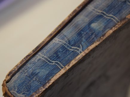 Elegantiškas senovinis odos įrišimas, nugarėlė gausiai puošta auksuotais žiedais. Knygos priešlapiai puošti marmuriniu popieriumi. Marmuravimas – sudėtinga ir brangi popieriaus dekoravimo technika, atsiradusi Japonijoje dar prieš 1000 metų, į Europą pateko iš Artimųjų Rytų. Technikos esmė ta, kad raštas ant popieriaus lakšto išgaunamas, kai į pagaminto tiršto tam tikrų augalinių medžiagų tirpalo vonelę paliejamas specialus dažų sluoksnis, tuomet suformuojamas raštas, o ant šio skysčio paviršiaus dedamas popieriaus lapas ir raštas veidrodiniu principu persikelia ant popieriaus lakšto.