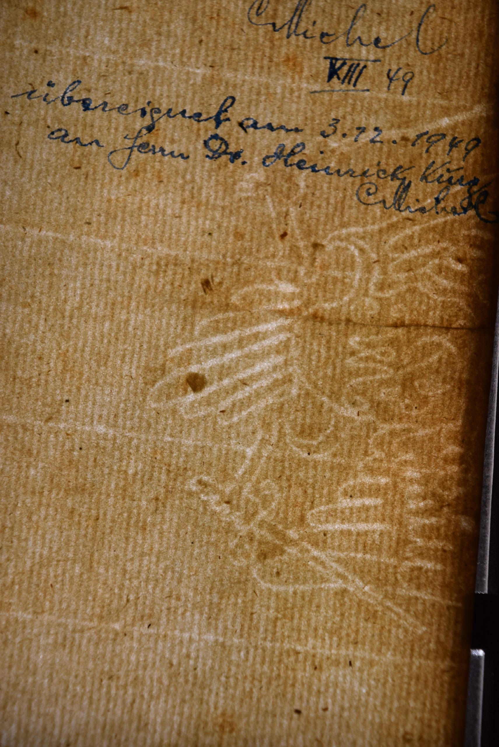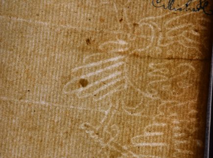 Kodekso priešlapiuose ranka įrašę ir taip savo nuosavybę asignavę jo savininkai. Taip pat priešlapį puošia sudėtingas vandens ženklas popieriuje vaizduojantis grifoną ar erelį, laikantį kalaviją.