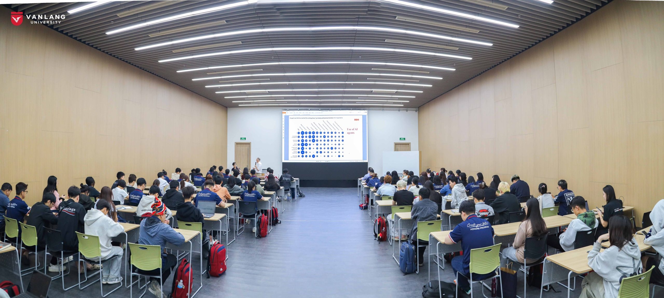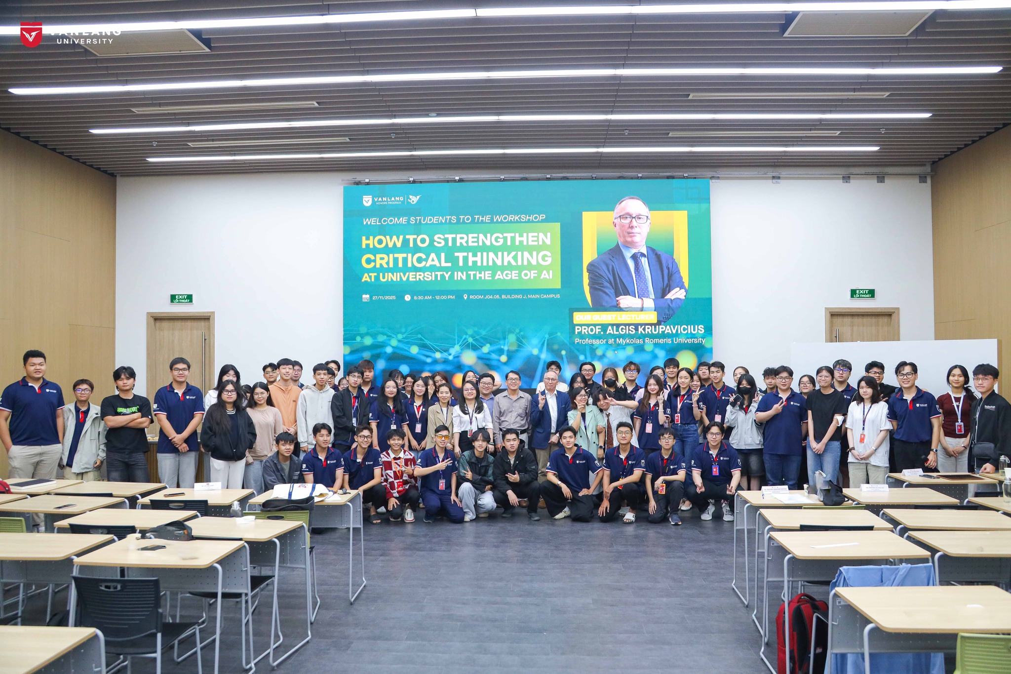 Lapkričio 27 d. Van Lang universitete vyko seminaras „Kaip stiprinti kritinį mąstymą universitetuose dirbtinio intelekto amžiuje“, integruotas į universitetinių studijų įgūdžių kursą. Jame prof. dr. A. Krupavičius studentams pristatė dirbtinio intelekto vaidmens šiuolaikiniame gyvenime apžvalgą bei penkių lygių DI naudojimo mokymosi procese skalę. Ši skalė padeda jaunuoliams suprasti technologijų galimybes ir ribas, atsakomybės aspektus bei įgūdžius, kurių reikia efektyviai taikant DI studijose.