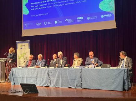 Lesbo saloje (Graikija) vykstančio Europos reformų universitetų aljanso (ERUA) viršūnių susitikimo – ERUA Summit 2025 – metu įvyko planinė Rektorių tarybos pirmininkavimo rotacija.
