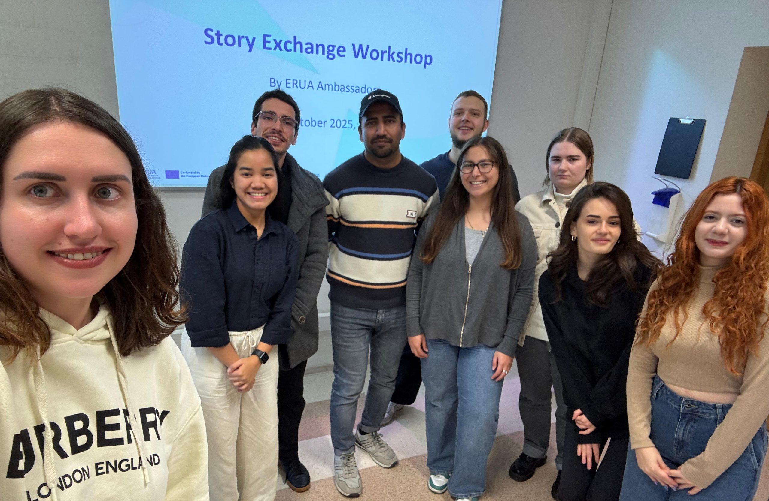 Spalio 14 d. Mykolo Romerio universiteto (MRU) ERUA ambasadoriai susirinko į „Story Exchange“ (istorijų mainų) dirbtuves, kurias vedė buvusi ambasadorė Yuliana Shuhani.