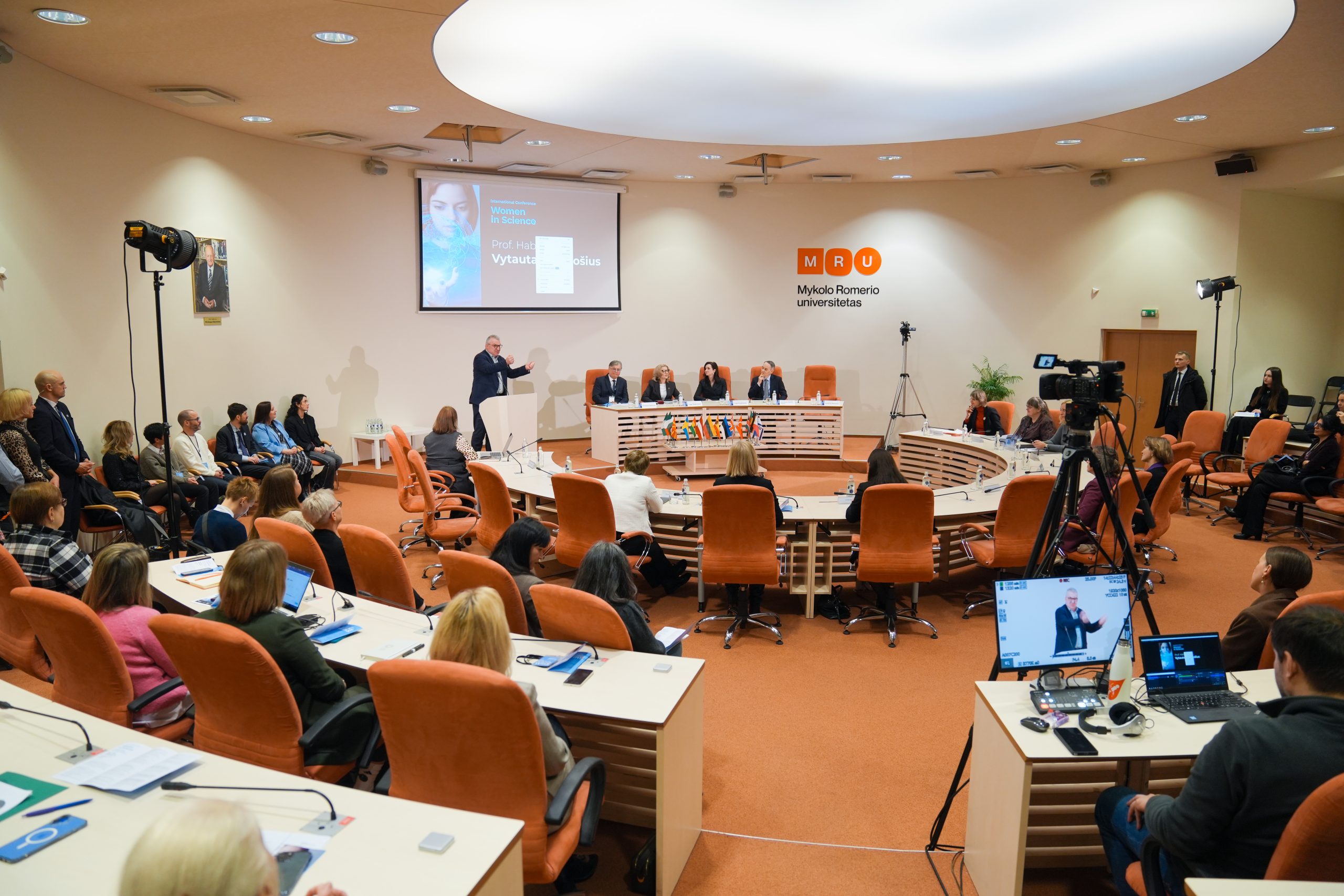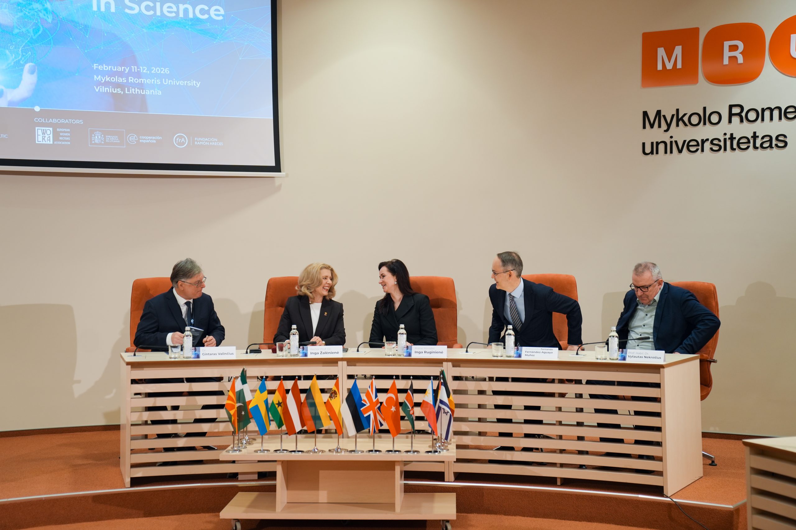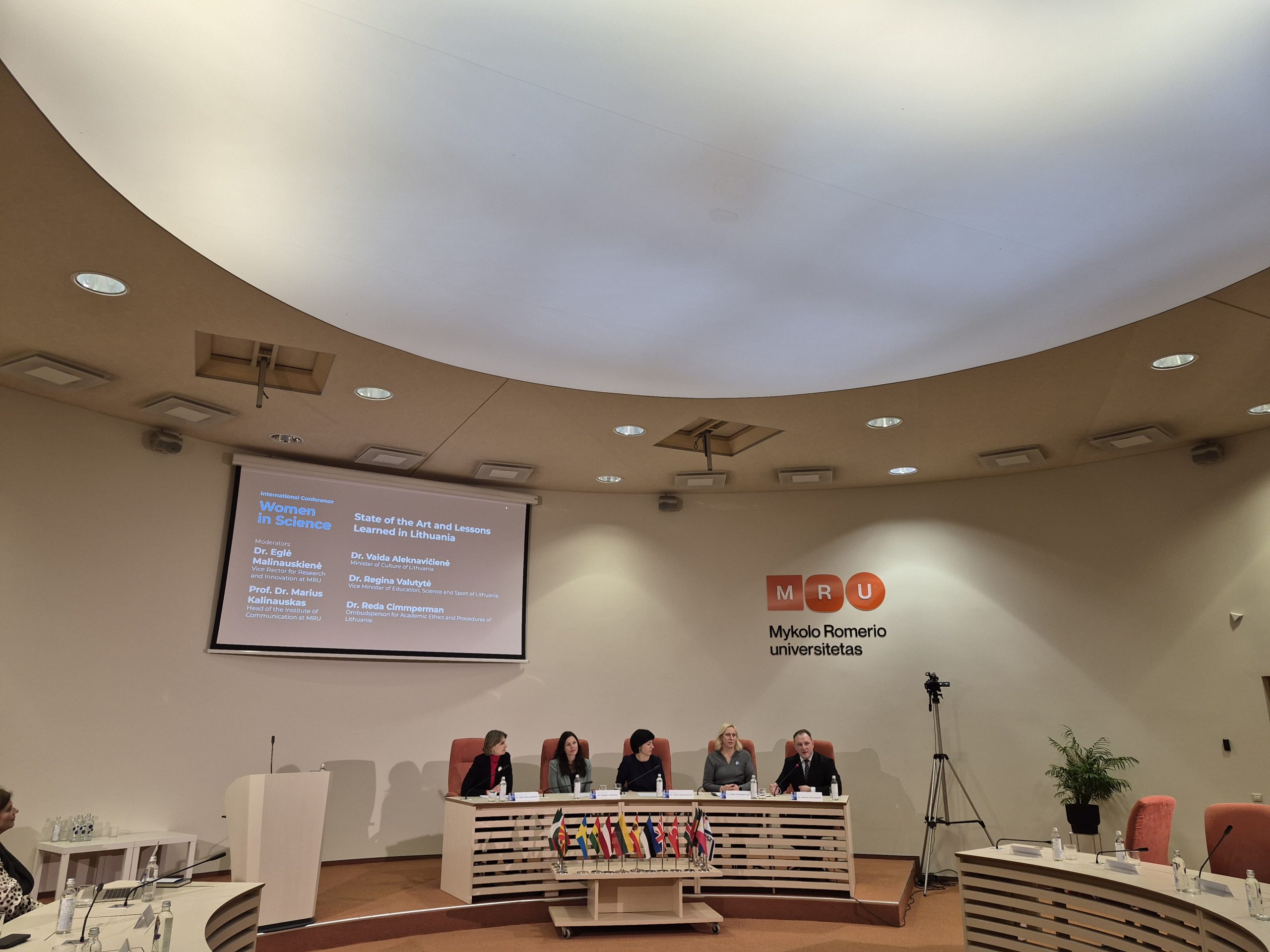Lietuvos respublikos kultūros ministrė dr. Vaida Aleknavičienė, Švietimo, mokslo ir sporto viceministrė dr. Regina Valutytė, Akademinės etikos ir procedūrų kontrolierė dr. Reda Cimperman (Reda Cimmperman), MRU vicerektorė mokslui ir inovacijoms dr. Eglė Malinauskienė aptarė lyčių lygybės politiką moksle, moterų vaidmenį mokslinėse bendruomenėse bei institucinius sprendimus, padedančius užtikrinti lygias galimybes tyrimų ir inovacijų srityse.