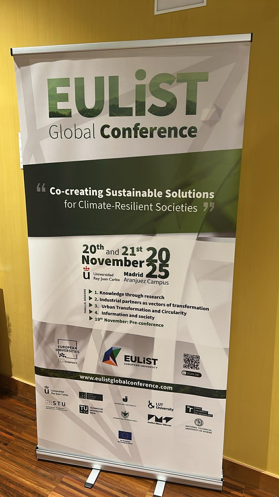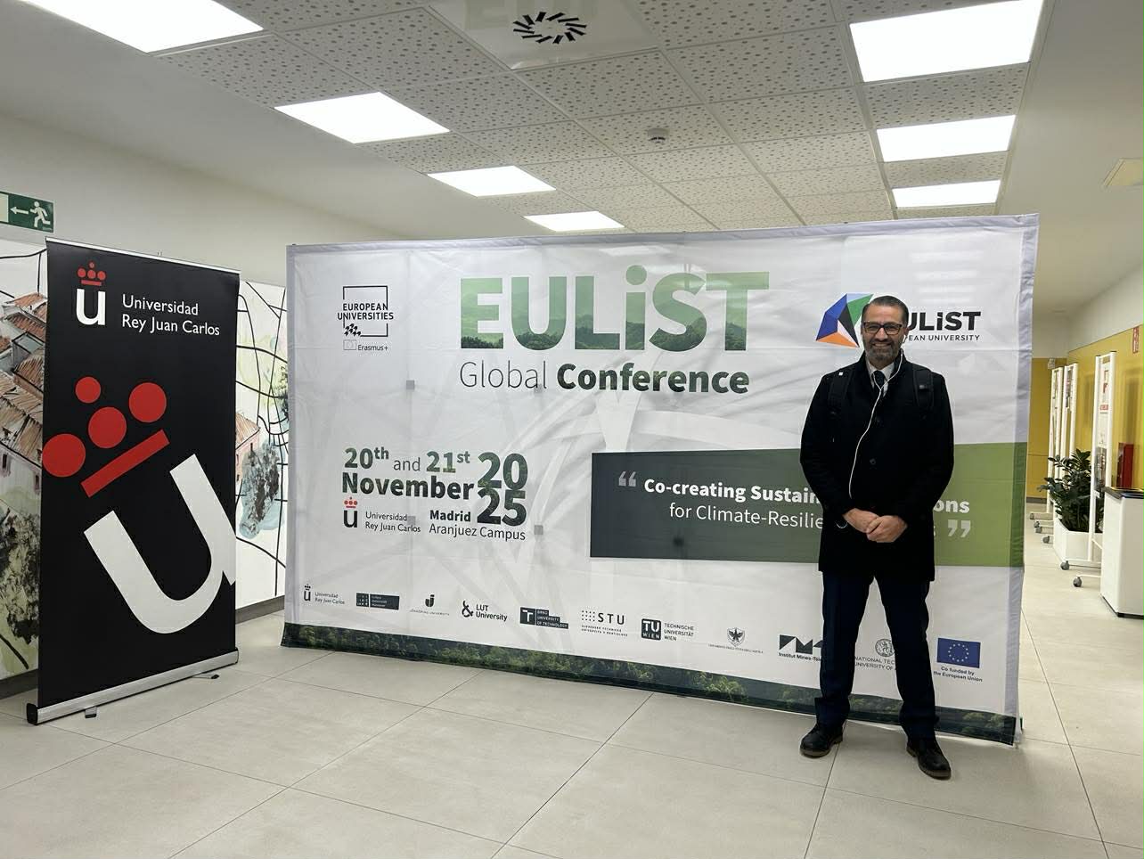 Mykolo Romerio universitetas (MRU) buvo ryškiai atstovaujamas EULiST pasaulinėje konferencijoje „Kuriant tvarius sprendimus klimatui atspariose visuomenėse“ (angl. Co-creating Sustainable Solutions for Climate-Resilient Societies), kuri vyko 2025 m. lapkričio 20–21 d. Madride, Ispanijoje. Subūrusi pirmaujančius akademikus, tyrėjus ir verslo sektoriaus atstovus, konferencija tapo dinamiška erdve aptarti inovatyvius kelius link klimato atsparumo, energetikos transformacijos, pramonės pokyčių ir sparčios technologinės pažangos poveikio visuomenei.