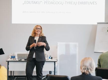Kas jungia mokytoją, tyrėją ir kūrėją? Atsakymų į šiuos klausimus lapkričio 13 dieną Mykolo Romerio universitete (MRU) ieškojo dalyviai, susirinkę į pedagogų–tyrėjų dirbtuves „EDUTAKU“. Tai buvo ne tik Lietuvos švietimo bendruomenės – mokslininkų, praktikų, švietimo politikos atstovų susitikimas, – bet ir bendras kūrybinis eksperimentas, kvietęs permąstyti mokytojo vaidmenį šiuolaikinėje visuomenėje.