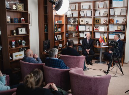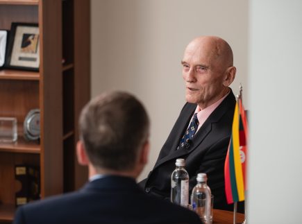 Pokalbį vedė MRU vicerektorius doc. dr. Saulius Spurga, pabrėžęs šio susitikimo išskirtinumą – tai jau 17-asis ciklo pokalbis, tačiau, jo žodžiais, „ypatingai ypatingas“, nes svečias – vienas iš valstybės kūrėjų.
