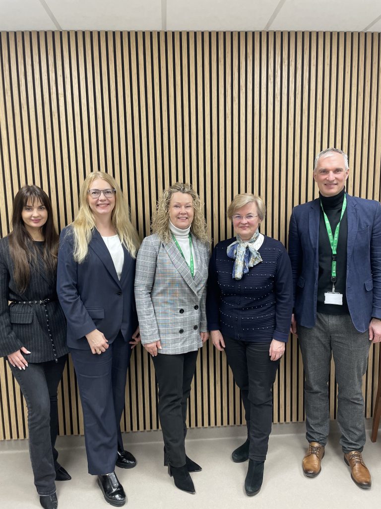 Nuotraukoje: dekano patarėja strateginėms partnerystėms ir inovacijoms Greta Zambžickaitė, prodekanė mokslui prof. dr. Natalja Istomina, direktoriaus pavaduotoja slaugai Renata Šturienė, dekanė prof. dr. Danguolė Jankauskienė, direktorius Mindaugas Sinkevičius
