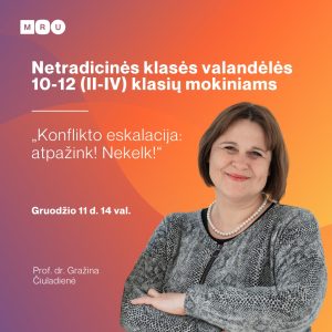 Registracija vyksta iki spalio 27 d. el. paštu: lyderystesakademija@mruni.eu (nurodant savo vardą, pavardę, instituciją/mokyklą ir kontaktus)